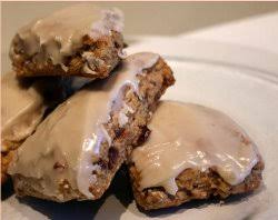 Glaze: Mix glaze ingredients until smooth. Adjust the amount of water to get to the desired consistency. I like the glaze to be rather thick. Spread lots of glaze over each scone and dry about 15 minutes before serving.